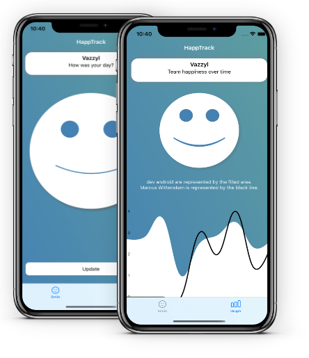 Jag skapade en appen Happtrack som fokuserar på mätning och visualisering. Mer specifikt så underlättar den kontinuerlig mätning inom en gruppering. Jag skapade appen för att lättare kunna mäta moralen och glädjen inom det team som jag leder, men det är egentligen upp till varje användare att avgöra vad de vill mäta och följa upp inom sin grupp. Appen ger till exempel en tydlig inblick över hur ens team mår och upplever sin arbetssituation spännt över tid.